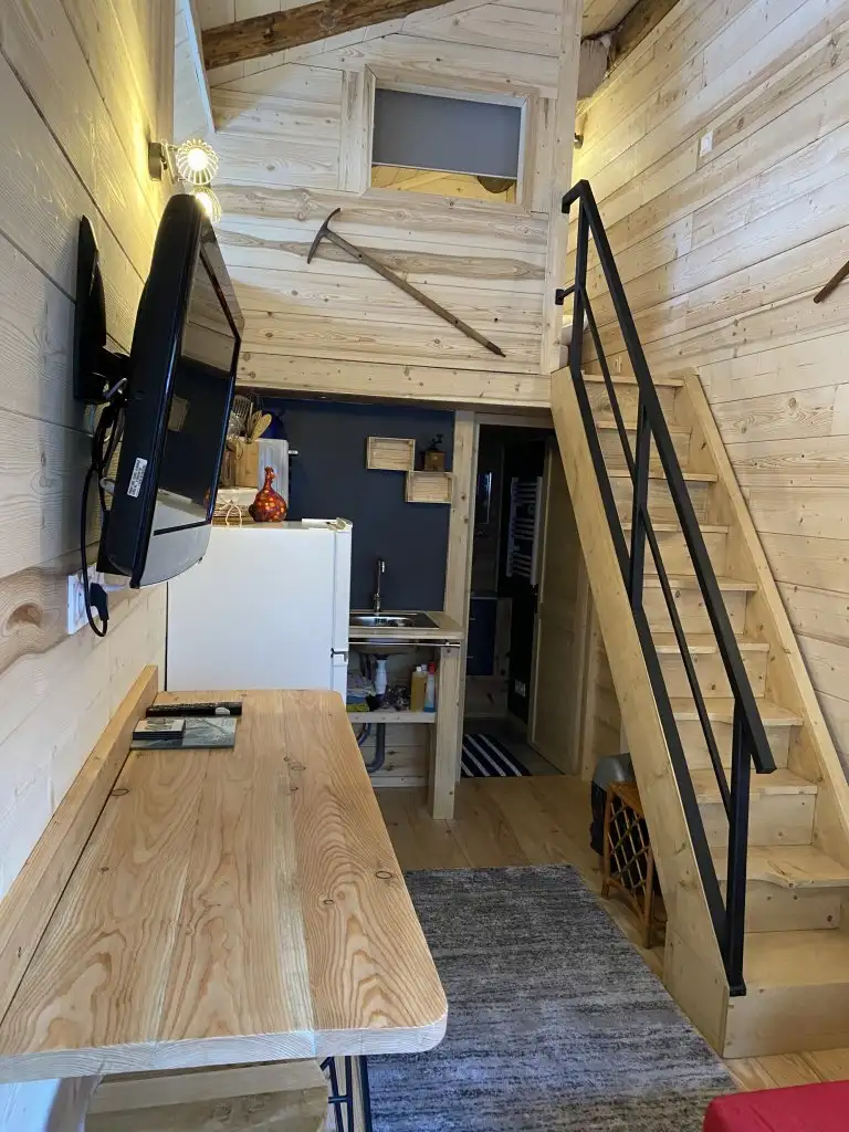 C’est un chalet individuel, sur 2 étages, 80m2, il est composé de 3 chambres, 1 chambre avec 1 lit superposé, et de 2 chambres avec un grand lit double de 140, 2 salles de douche, 2 toilettes, 1 séjour cuisine et un coin lecture salon avec télévision.